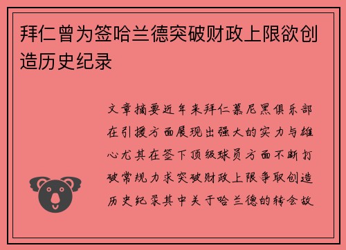 在最近的拜仁慕尼黑俱乐部内部,赫内斯和鲁梅尼格的公开言论引发了广泛关注,尤其是关于球队在欧冠赛季中的潜力问题。赫内斯在一场采访中称拜仁是本赛季的“黑马”,暗示他们可能成为不可忽视的黑马力量,打破外界对其竞争力的常规看法。而鲁梅尼格则明确表示他的立场不同,认为拜仁始终是欧冠的有力竞争者之一,不应该被低估。这一对比引发了关于球队定位、管理层理念差异及拜仁在欧冠中的整体前景的热烈讨论。本文将围绕赫内斯称...